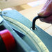 Leveres med 3 føringsstykker (3, 5 og 7 mm), som kan sættes ind i den forreste ende af føringsskinnen. Derved er det muligt - i arbejdsgang nummer to - at gøre kærvbredden større. Det isatte føringsstykke forhindrer derigennem at den først udstukkede kærv „løber ud“.
